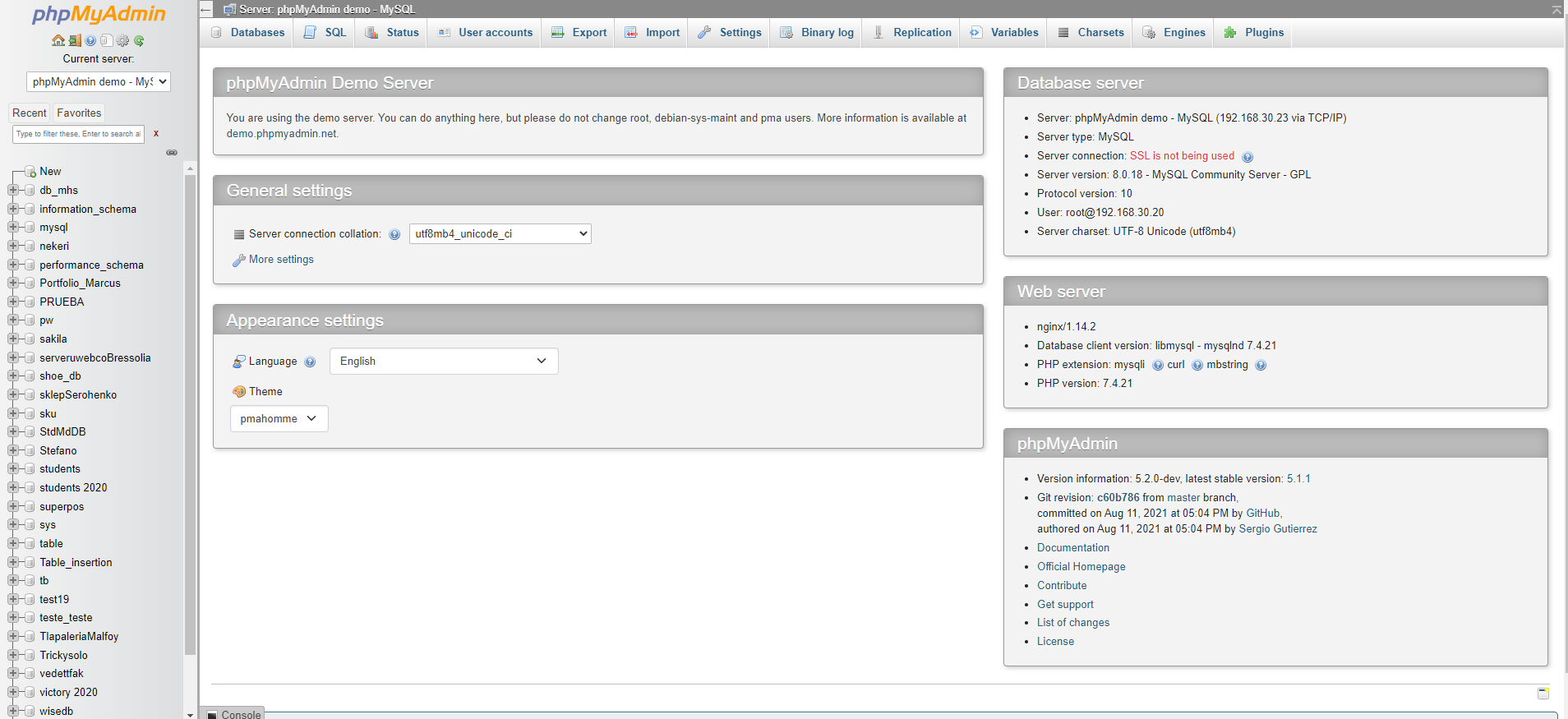 - the ability to integrate PHPMyAdmin into your own development through the GNU General Public License, and other features.